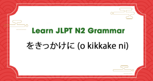 Learn JLPT N2 Grammar: をきっかけに (o kikkake ni) Meaning: with… as a start; as a result of; taking advantage of How to use: Verb (た form) + の/こと + をきっかけに Noun + をきっかけに Example sentences: 1. 彼女は卒業をきっかけに髪を切った。 kanojo wa sotsugyō o kikkake ni kami o kitta. She cut her hair …