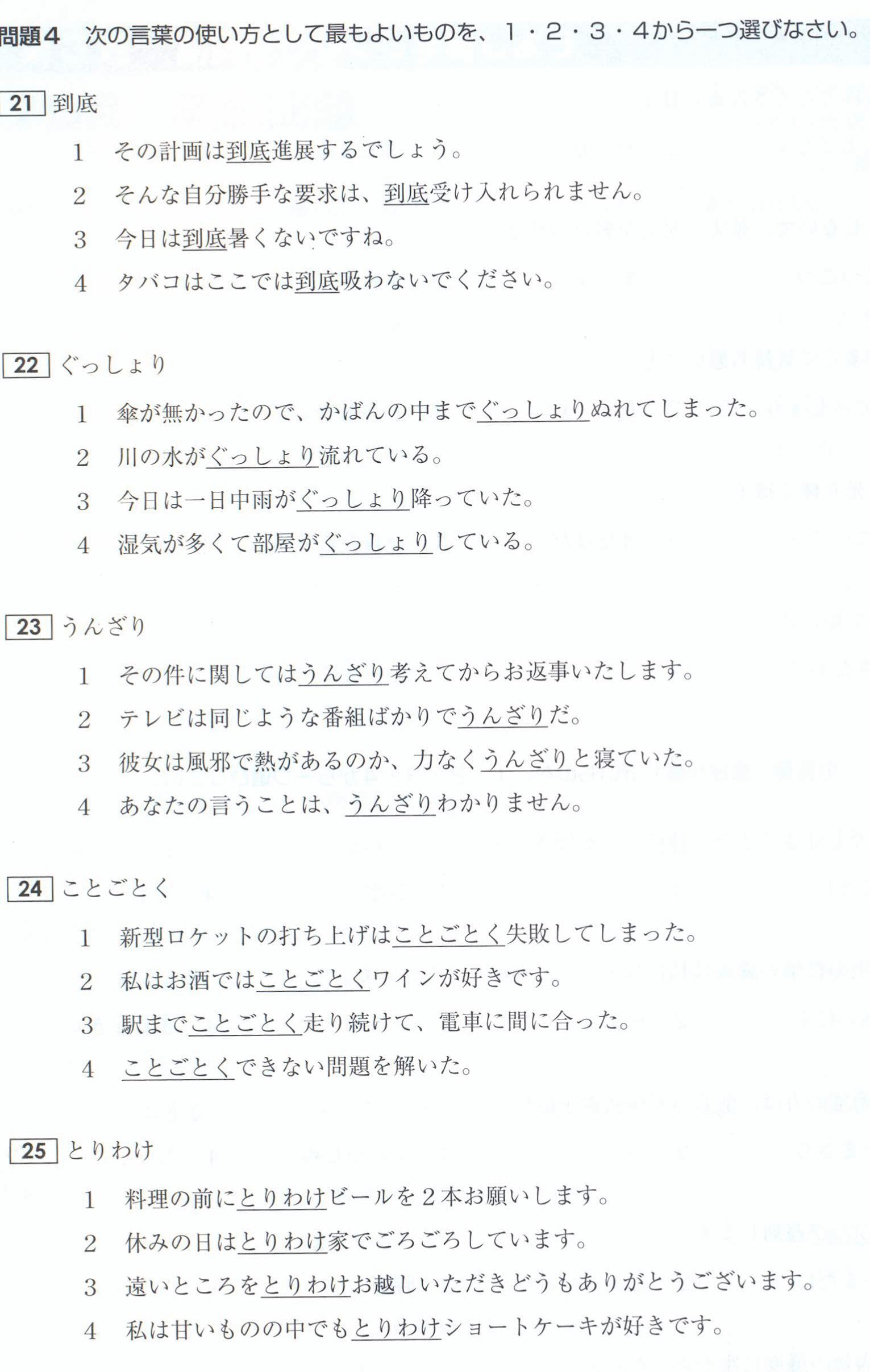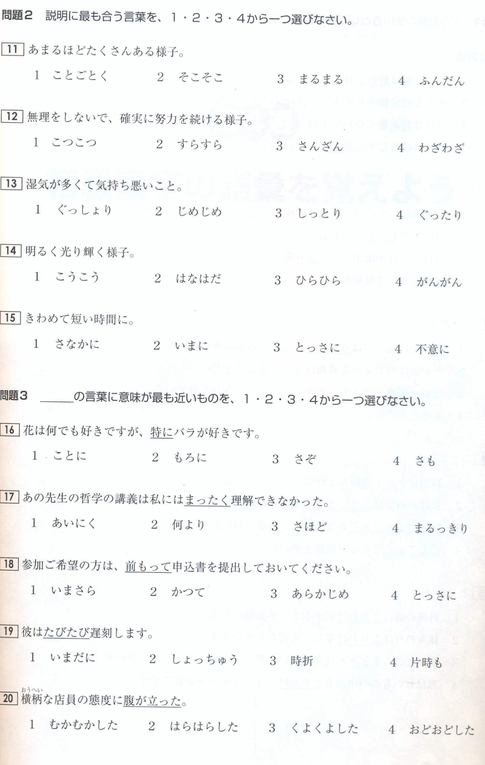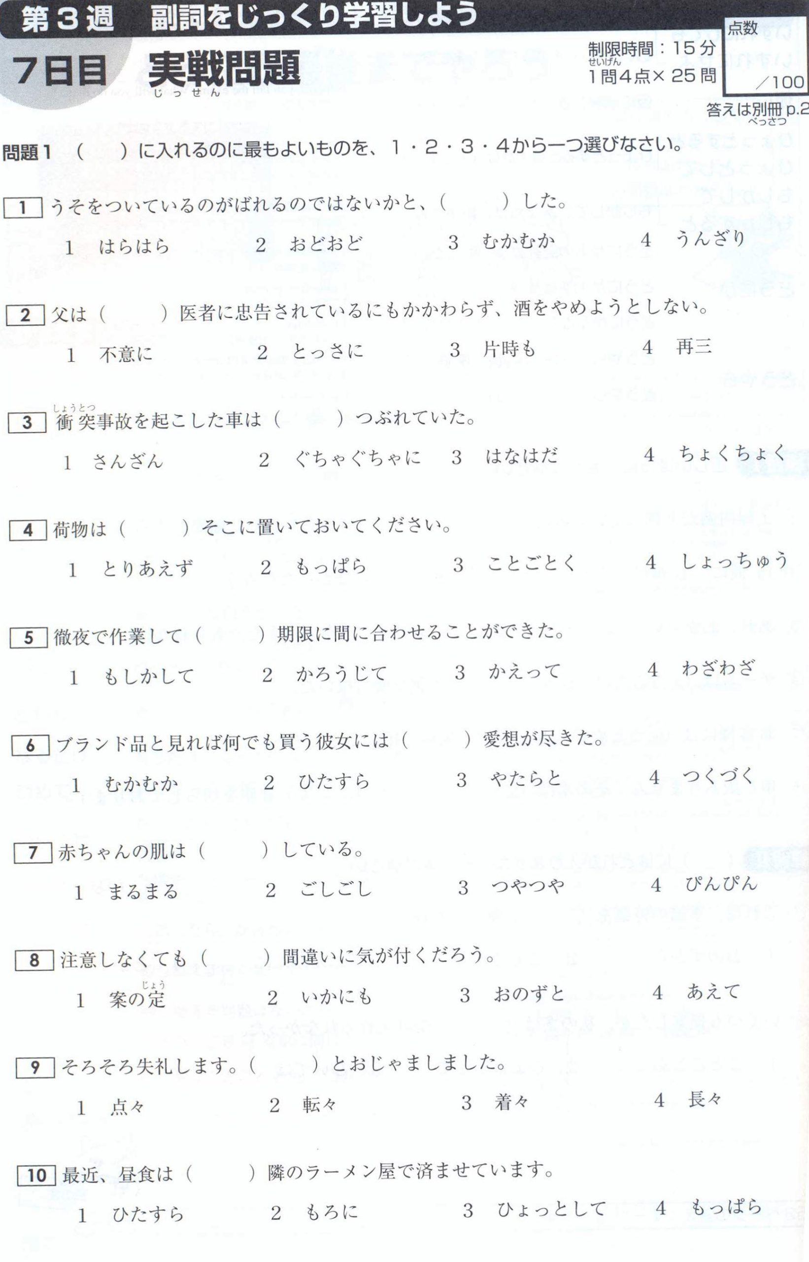 N1 Vocabulary Exercises: Test 3 (with Answers)
