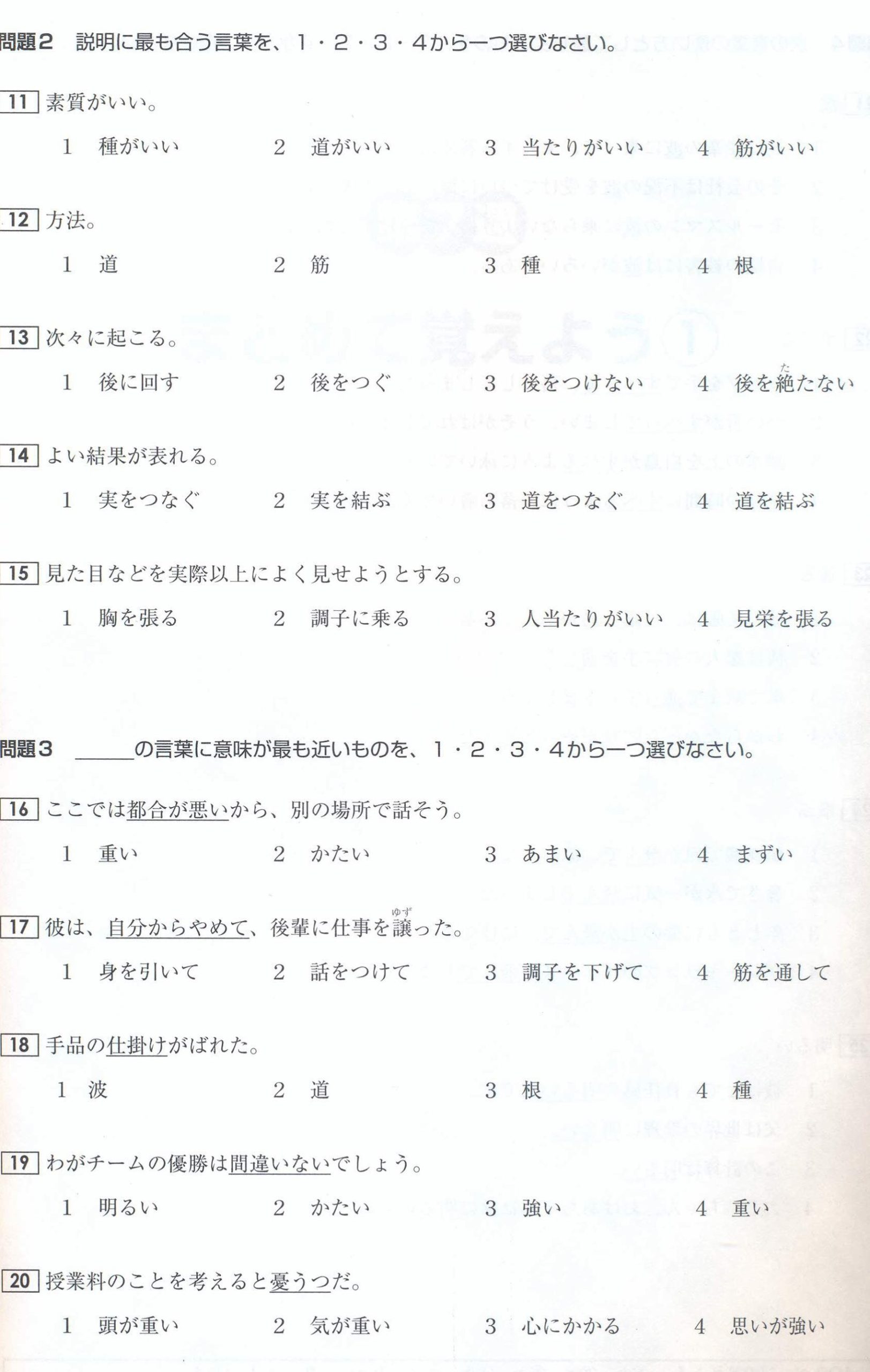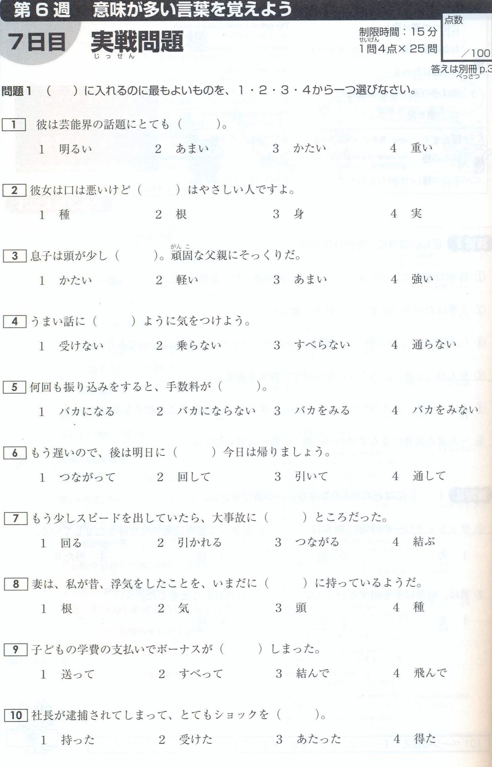 N1 Vocabulary Exercises: Test 6 (with Answers)