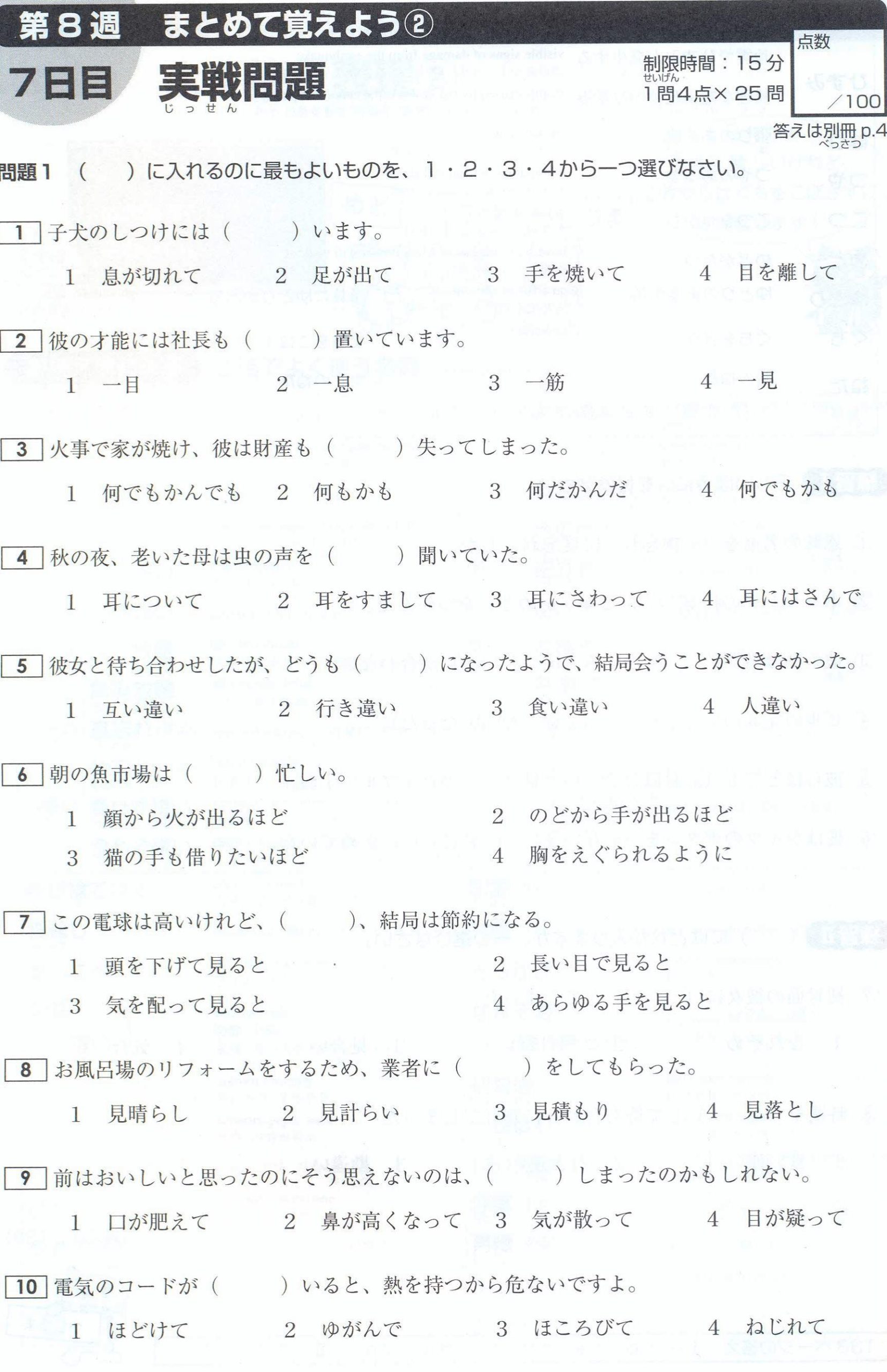 N1 Vocabulary Exercises: Test 8 (with Answers)