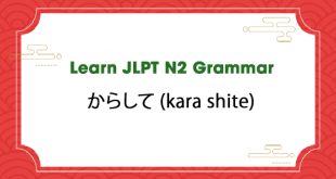 Learn JLPT N2 Grammar: からして (kara shite) Meaning: judging from; based on; since; from; even How to use: Noun + からして Example sentences: 1. リーダーからしてやる気がないのだから、ほかの人たちがやるはずがない。 rīdā kara shiteyaru ki ga nai nodakara, hoka no hito-tachi ga yaru hazu ga nai. Even if the leader doesn’t do it, I don’t think …
