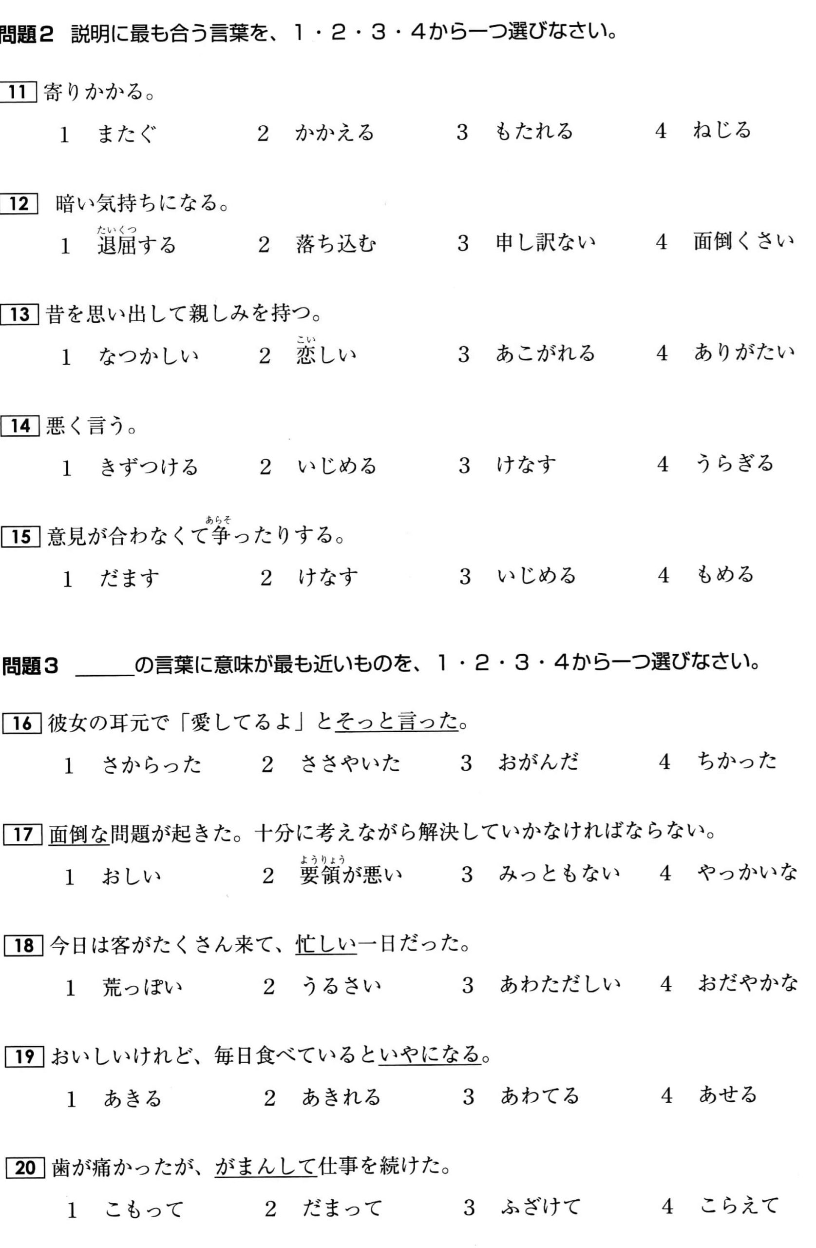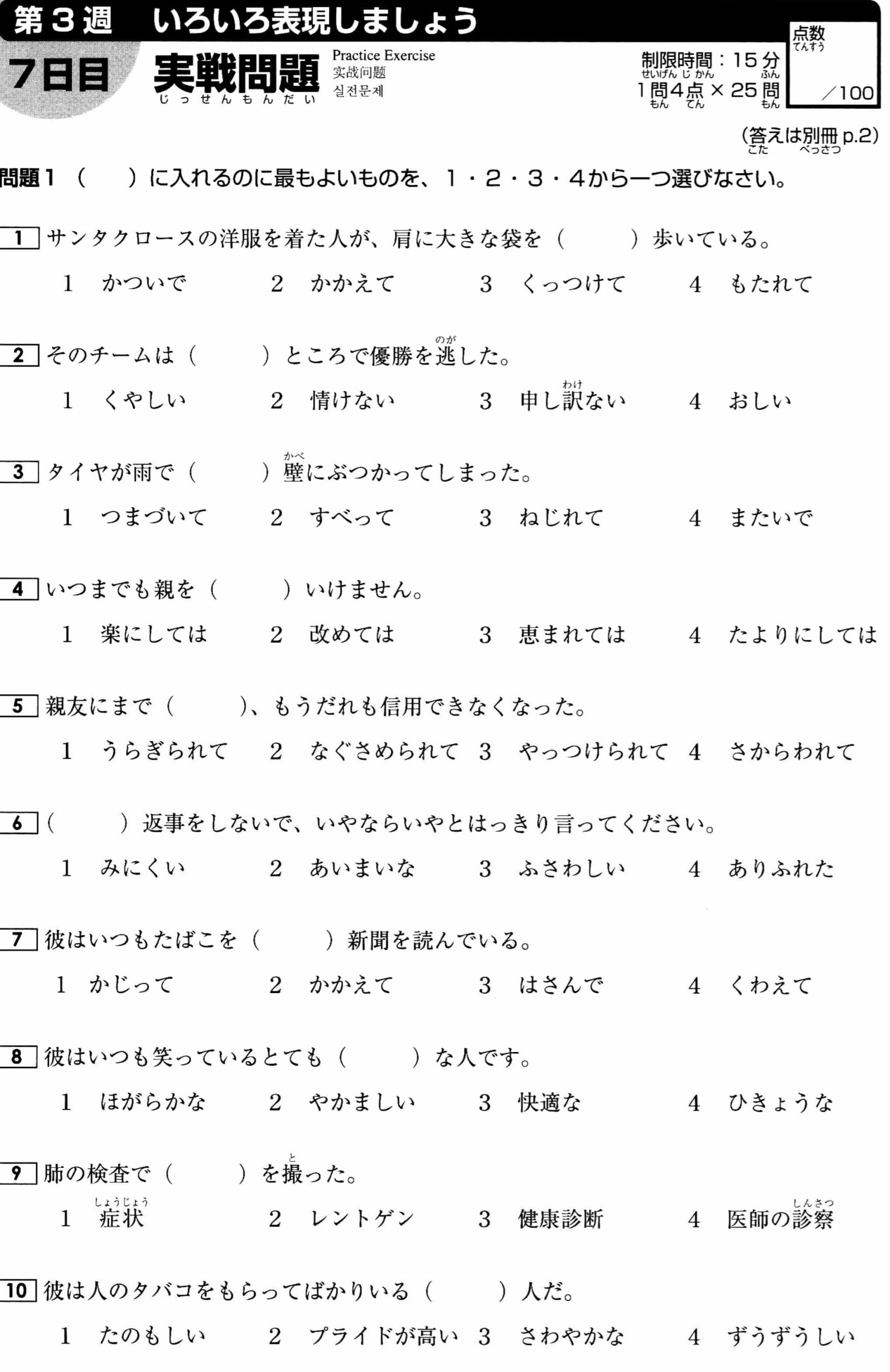 N2 Vocabulary Exercises: Test 3 (with Answers)