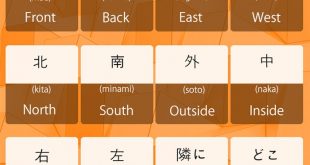 Japanese Vocabulary for Direction Kanji Hiragana Romaji Meaning 方面 ほうめん houmen Direction 東 ひがし higashi East 西 にし nishi West 南 みなみ minami Southern 北 きた kita North 北東 ほくとう hokutou northeast 南東 なんとう nantou South East 北西 ほくせい hokusei northwest 南西 なんせい nansei Southwest 東西 とうざい touzai West East …